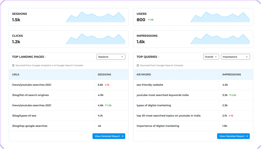 - Consolidated View of Google Analytics & Google Search Console
