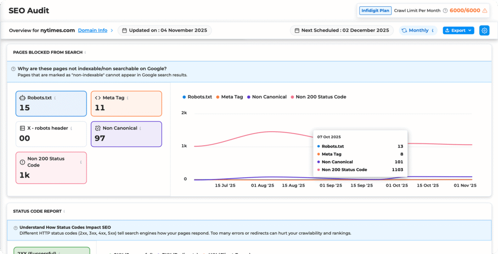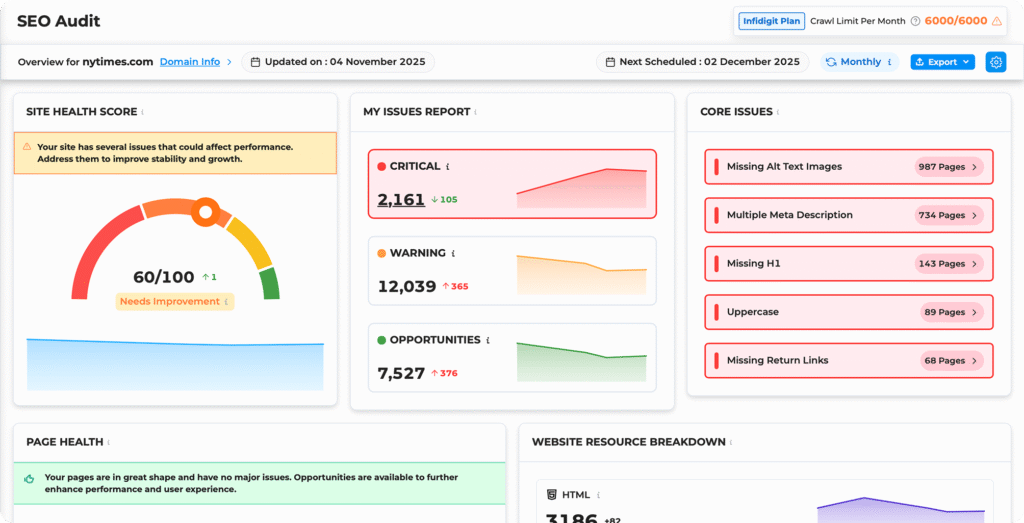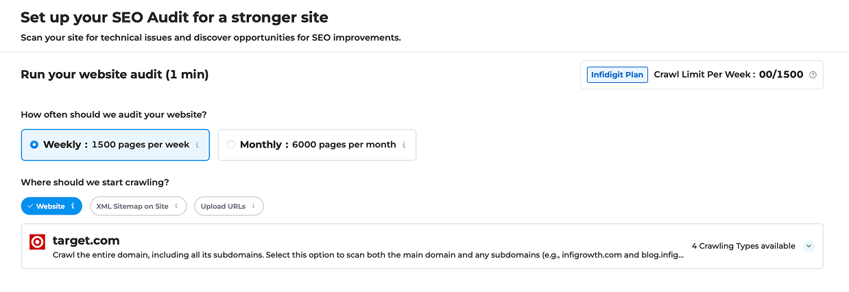 The SEO Audit tool of Infigrowth allows for limited audit based on the plans, which gives users flexibility to run checks as required. This ensures continuous monitoring and ongoing adaptation while keeping your website in the top shape.